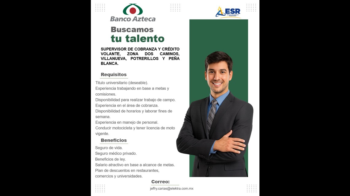 - Con experiencia en area de cobranza.